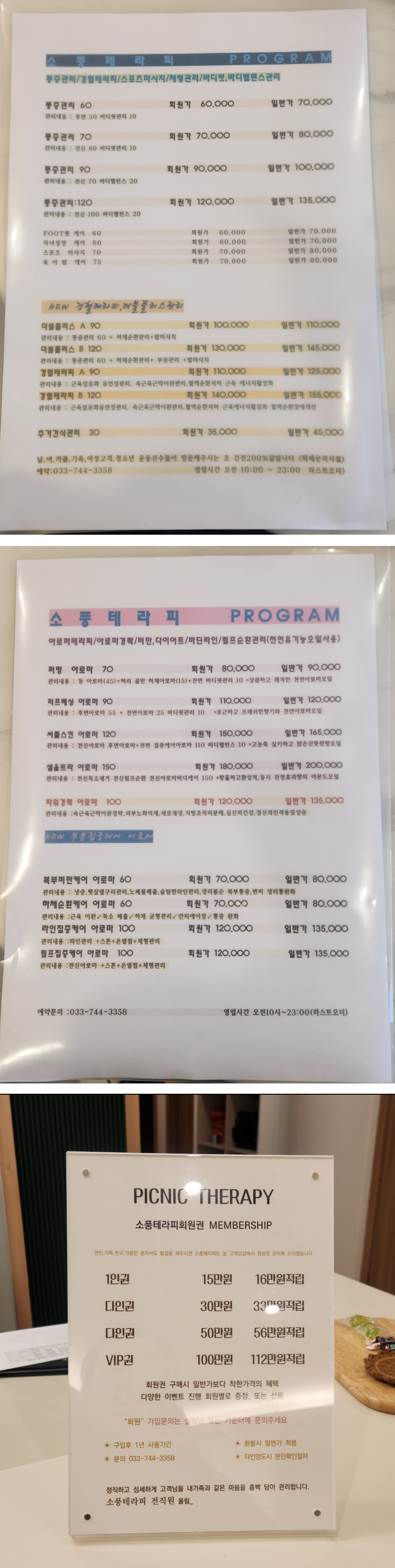 소풍테라피 마사지 프로그램 & 가격